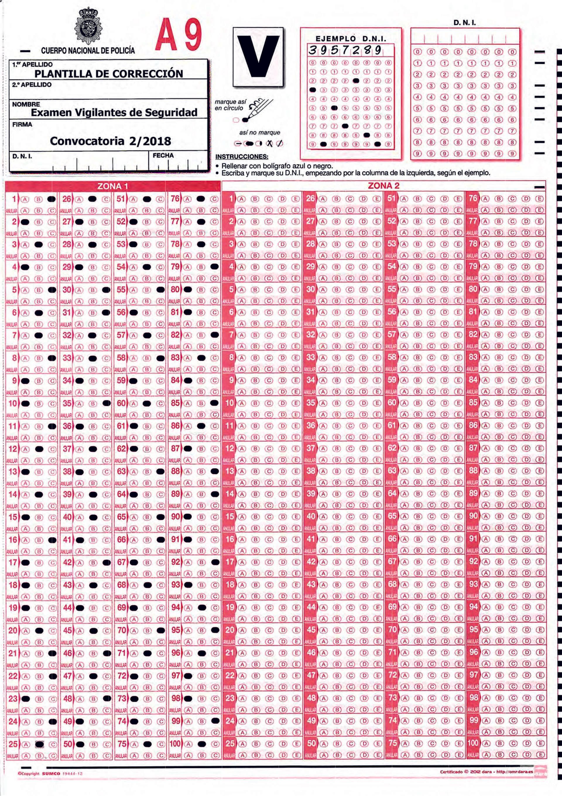 8.6.1 Prueba de conocimientos teóricos: Consistirá en la contestación, por escrito, de un cuestionario de sesenta (60) preguntas tipo test ajustadas al programa que se acompaña como apéndice II de este anexo. Este ejercicio se calificará a razón de un (1) punto por respuesta correcta. Para ser declarado apto, el aspirante deberá obtener como mínimo la mitad de los puntos (30 puntos), teniendo en cuenta que las respuestas mal contestadas puntúan negativamente conforme a la siguiente fórmula: